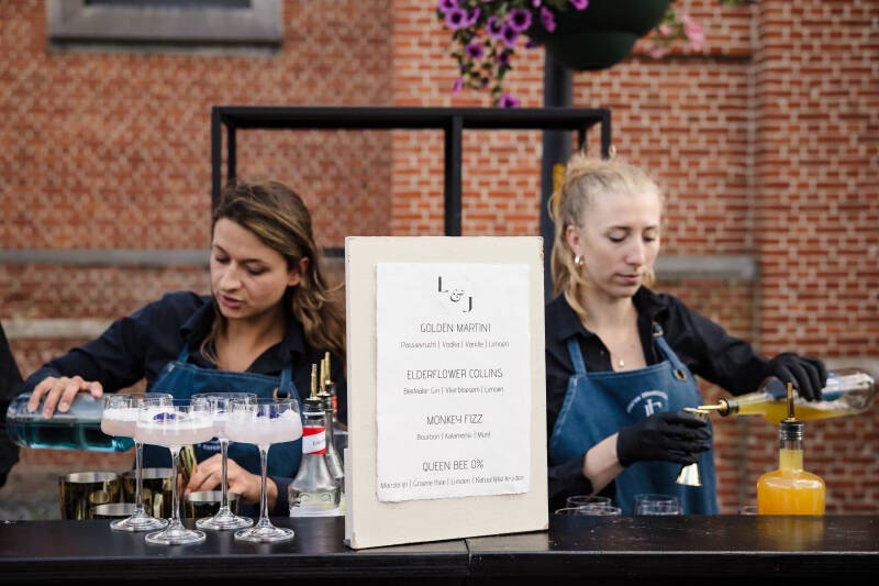 Ze wilden hun gasten verrassen met iets unieks — een persoonlijke cocktailbar in plaats van de klassieke cava of fruitsap.